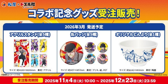 「松屋コラボキャンペーンオリジナルグッズショップ」にてコラボ開催記念グッズを期間限定販売いたします。