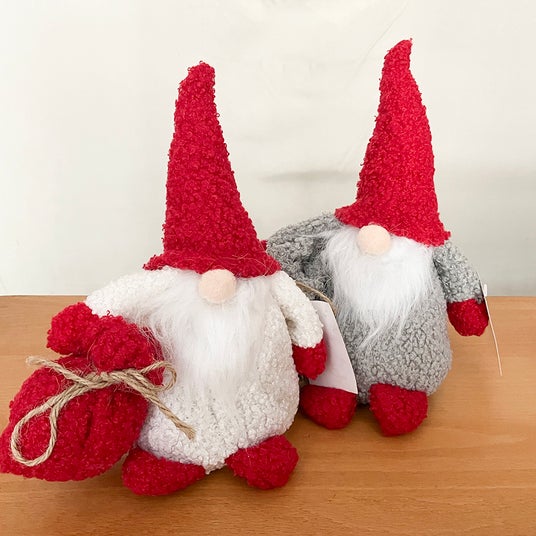 左:ファブリックトムテ GR おさげ 16×7.5×7.5cm 825円 右:ファブリックトムテ GR ひげ 16×7×8cm 825円 中央:ファブリックサンタスタンドWH 17×10×7cm 1,045円