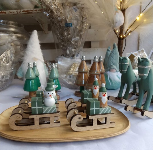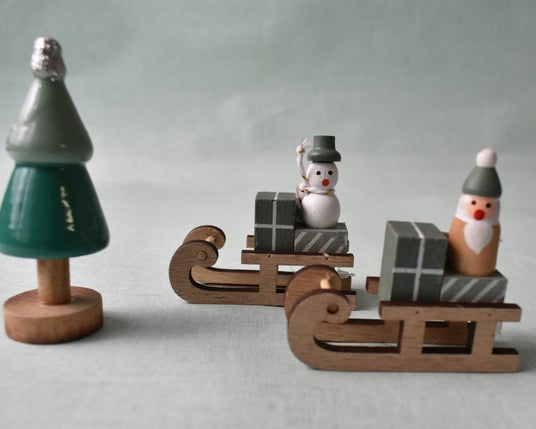 ・ウッドツリーS GR 9×3.5×3.5cm 770円 ・ウッドレーススノーマン GR 6.5×7×2.3cm 770円 ・ウッドレースサンタ GR 6.7×7×2.5cm 770円