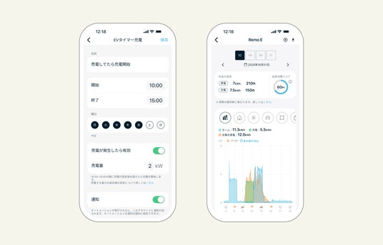 「Nature Home」アプリからEV充電の開始・終了時刻や曜日を詳細に決められる「EVタイマー充電」を設定できます。平日/休日などの生活リズムや、夜間の電力利用が割安な電気料金プランに合わせた充電制御を自動で行い、家庭の電力利用を効率化します。