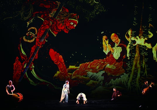 日本の伝統的な舞台芸術と最新技術の融合で、愛と狂気に満ちた北斎の半生を描く