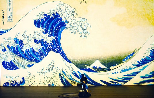 北斎の浮世絵を鮮やかに映し出す最新鋭のデジタルプロジェクションライブ