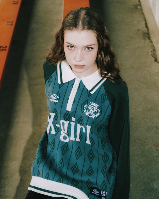 X-girl × UMBRO HALF ZIP JACQUARD KNIT TOP ¥16,500(税込)