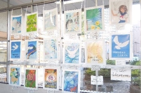 市内小中学生から募集した 「あなたが思う平和」ポスター作品約70点