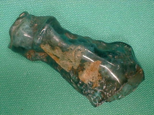 長崎市で被爆し溶けた瓶(長崎市原爆資料館所蔵)