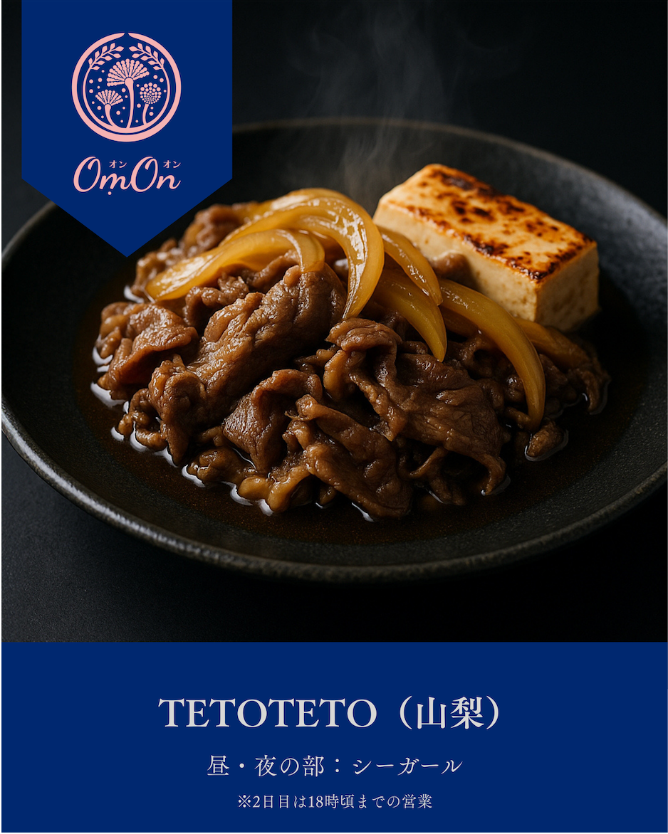 全国各地の食領域の可能性をクリエイティブでひらくTETOTETOが今回も男鹿へ。毎回大盛況のブースで、稲とアガベのお酒に合う「TETOTETOの牛皿」(米トッピングも可)を提供予定。