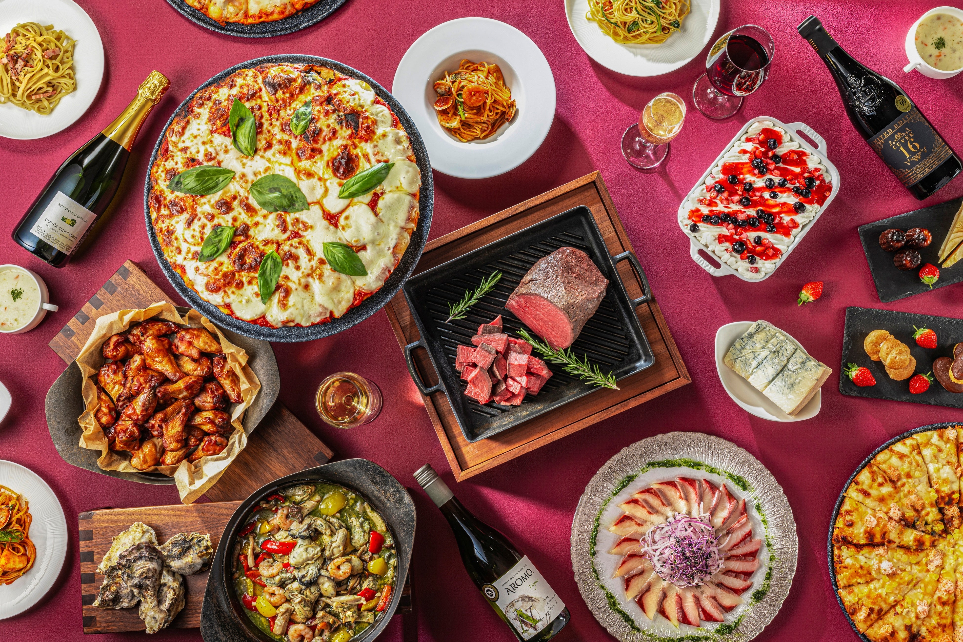 冬の味覚の牡蠣を使用した「牡蠣のアヒージョ」や、旨みの強い薩摩茶美豚を使った「ローストポーク」、濃厚なコクが愉しめる「ゴルゴンゾーラのクリームパスタ」など、冬を五感で味わえる季節限定メニュー をご用意しました。さらに、乾杯にぴったりのスパークリングワインからお料理に合わせて愉しめるフルボディワインやデザー トワインまで、様々なお飲み物もご用意。