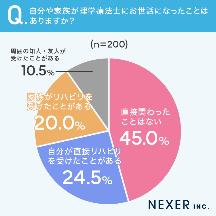 続いて、自分や家族が理学療法士にお世話になったことはあるかを聞いてみました。