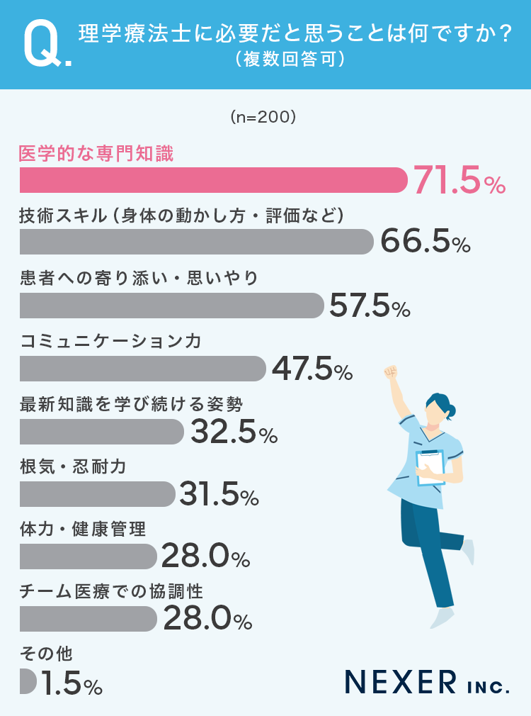■71.5%が、理学療法士に必要だと思うことは「医学的な専門知識」