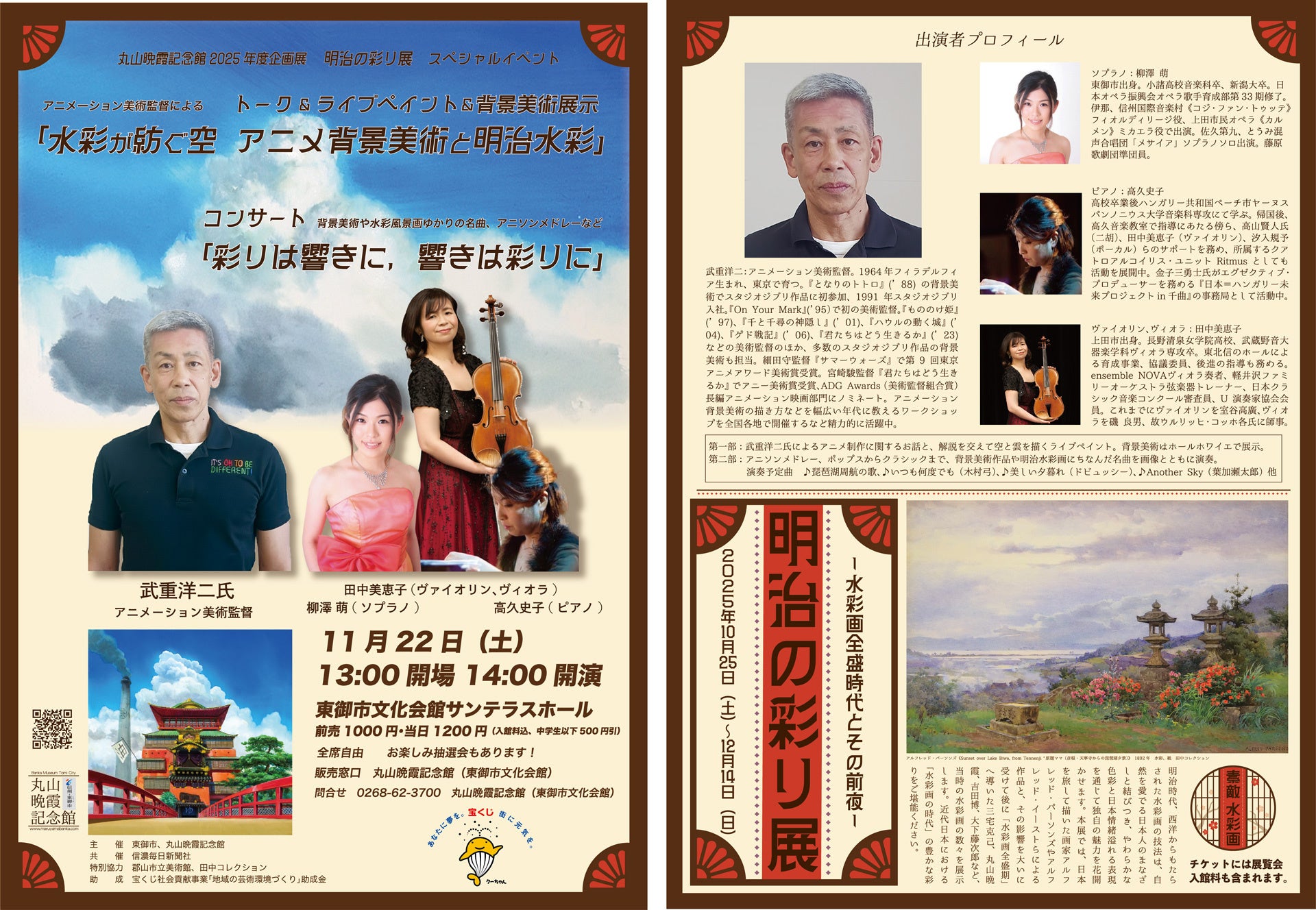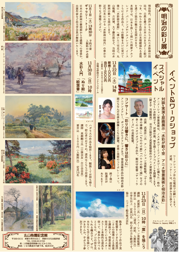 【長野県東御市】丸山晩霞記念絵画館企画展「明治の彩り展 -水彩画全盛時代とその前夜-」スタジオジブリ美術監督 武重洋二氏 特別イベントも開催!