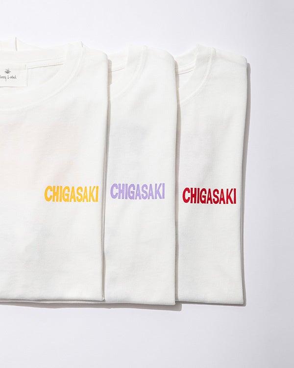 海や太陽、サーフボードを乗せた自転車など、茅ヶ崎らしい風景をRyu Ambeさんのフィルターを通して描き下ろしていただいたイラストをバックプリントに、胸元には"CHIGASAKI"の文字をワンポイントにあしらったスペシャルな仕様となっています。