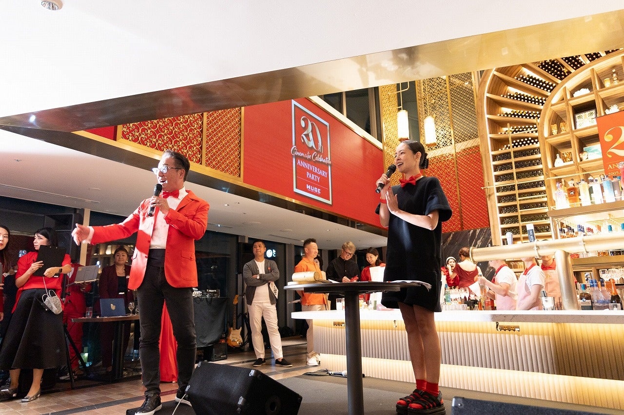 2025年9月12日、ニュウマン高輪4階に新たにオープンした4店舗にて、「HUGE 20th Anniversary Cinematic Celebration」をコンセプトに創業20周年記念パーティーを開催いたしました。当日は多くのゲスト、取引先関係者様にお越しいただき、創業当初からの仲間たちとともにグラスを掲げる祝杯の瞬間には、HUGEが20年間積み重ねてきた"人と街をつなぐ時間"が鮮やかに蘇りました。会場の4店舗のメニュー以外にも、メキシカン、アジアン、スパニッシュまで、HUGEが展開する全てのブランドの料理が彩り豊かに振る舞われ、バーテンダーやDJ、シンガーによるパフォーマンスや、チャリティーオークションなども実施。歓声と笑顔に包まれた会場には、「HUGEの20年は、これからの100年へつながる始まりである」という想いが溢れていました。