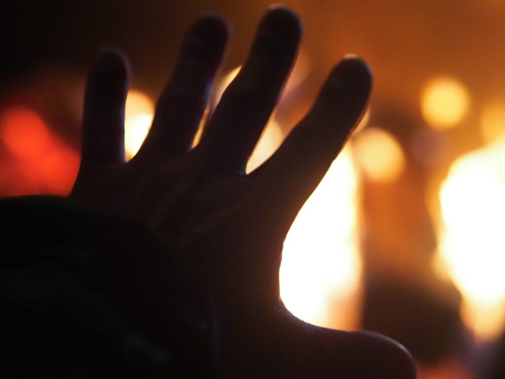 焚き火の温かい光の中、普段では言えない気持ちをそっと打ち明ける。