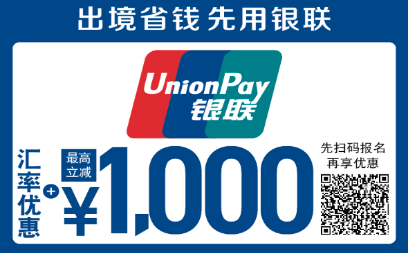 - 銀聯カード決済時のレート還元+最大1,000円OFFクーポン