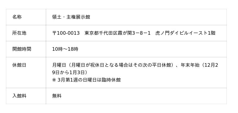 お問合せ:領土・主権展示館 03-6257-3715