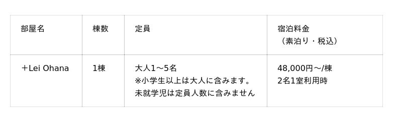 +Lei Ohanaは「家族の絆を深める特別な時間」をテーマにした新施設。1日1組のみ。小さなお子さま連れのご家族に最高の思い出をお届けいたします。