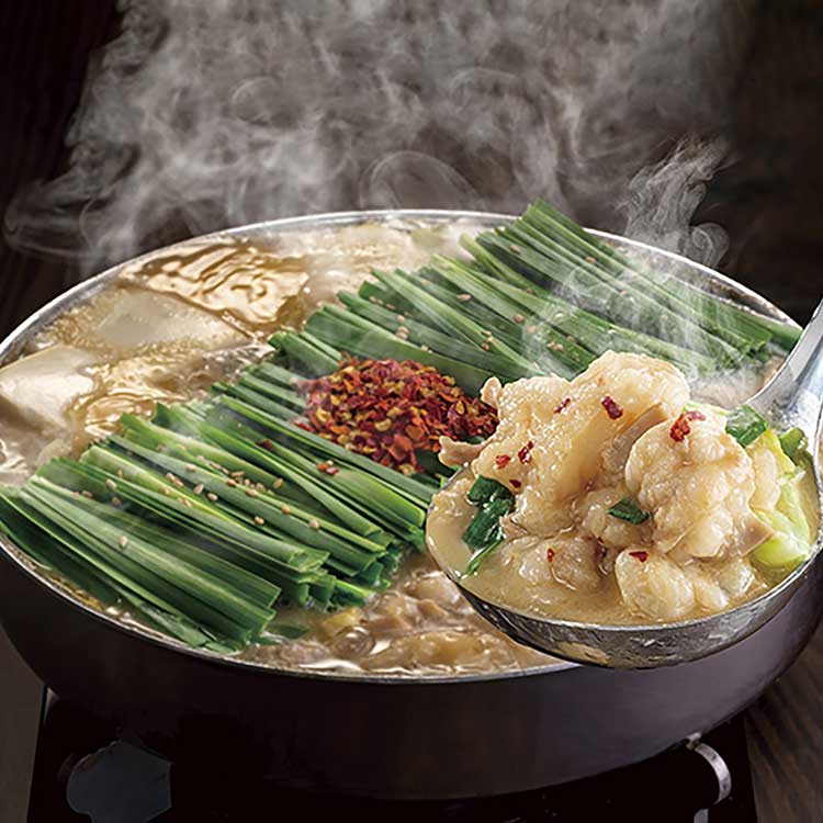 数種類の味噌をブレンドした秘伝スープに、脂ののった牛の小腸だけを使ったプリプリのもつ。全国にお店を展開する博多もつ鍋専門店『おおやま』の味を、ご家庭へお届けします。