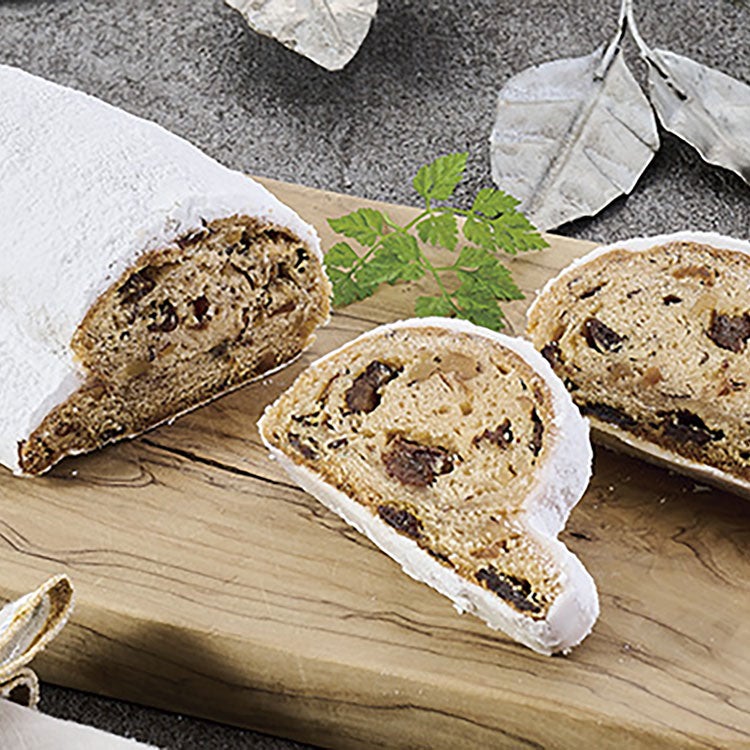 新百合ヶ丘の名店が贈るドイツの伝統菓子シュトーレン。ドライフルーツやナッツ、ぶどうをたっぷり使った数量限定の人気商品です。