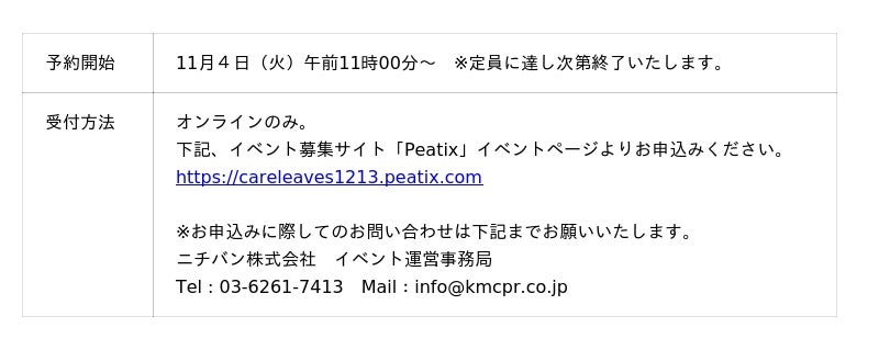 ■お申込みはこちら:https://careleaves1213.peatix.com