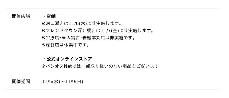 [11/5(水)~11/9(日)]【グランバザール】をファッションプラザ[パシオス]にて開催!