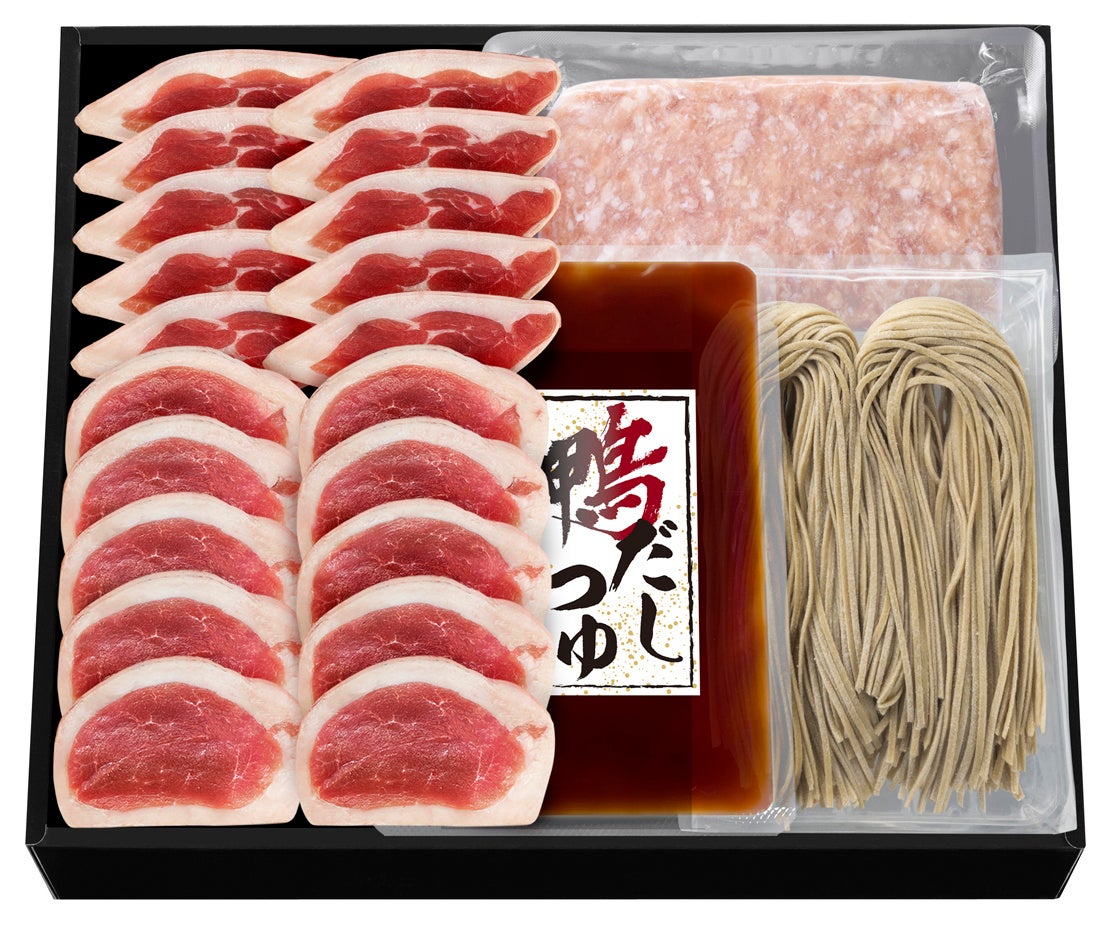 ・【冷凍】国産あい鴨 京鴨しゃぶしゃぶ用セット(あい鴨肉、つみれ、信州そば付き)10名