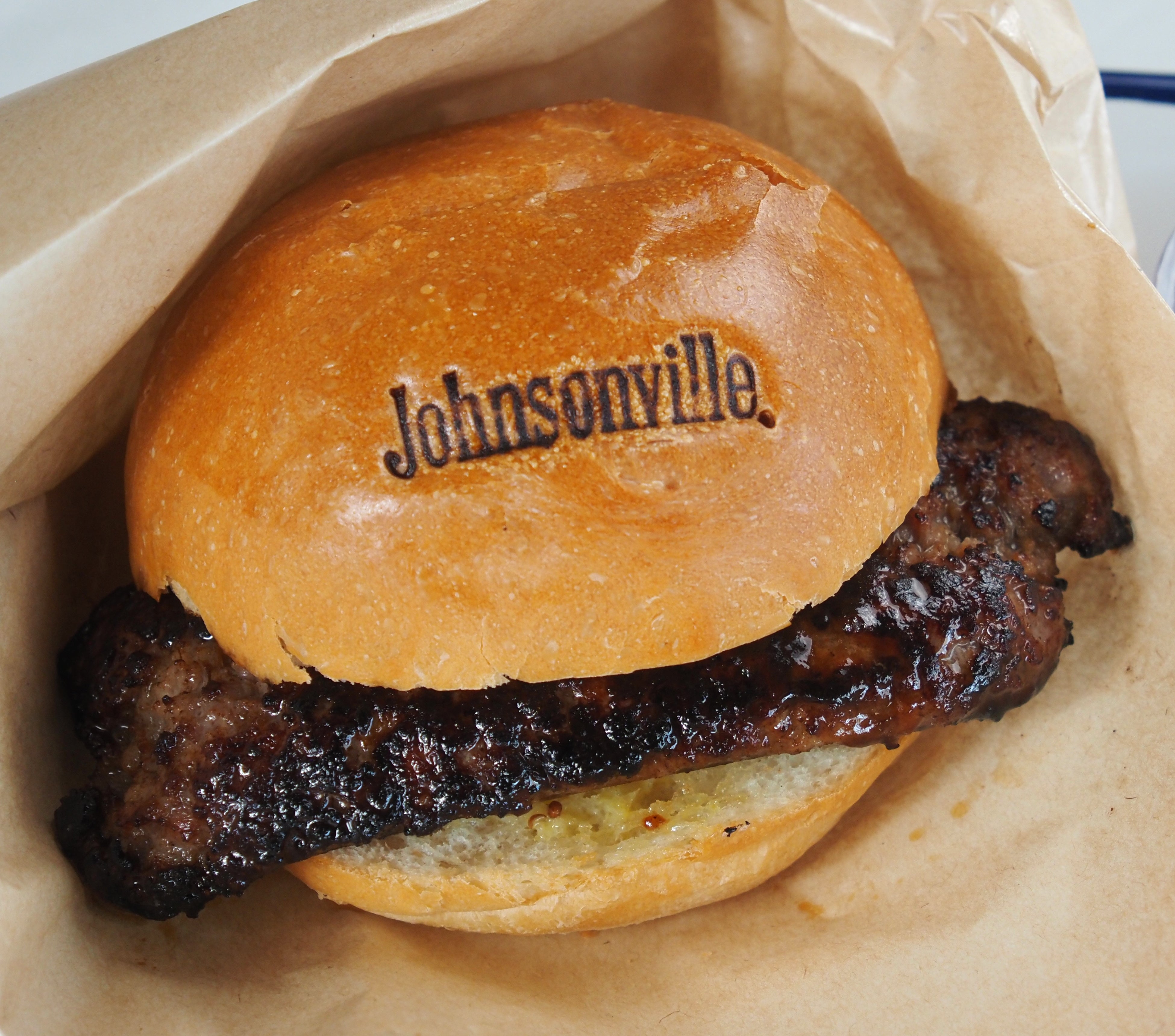 厳選された豚肉を独自処理し、超フレッシュな状態で生ソーセージに仕上げられたお肉本来の美味しさが味わえるジョンソンビルの生ソーセージ「BRATS」。このBRATSをバーガースタイルのサンドウィッチとLow & Slowのスモークソーセージでご提供します。