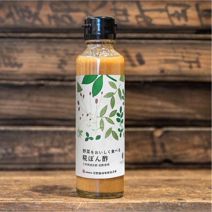 「GREENable(グリーナブル)」野菜をおいしく食べる糀ぽん酢(145ml)648円 地域の酒蔵から副産物の酒粕を仕入れて3年熟成させて育てた酢酸菌で造った"赤酢"と、規格外の地産しいたけの乾燥パウダーを使った、糀由来の旨みとコクが特徴の柚子ぽん酢。