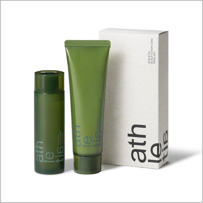 「athletia(アスレティア)」スカルプ&ヘアケア トライアルキット 2,750円 スカルプケア シャンプー(50ml)・スカルプ&ヘア トリートメント(50g)頭皮と髪をすこやかに導くシャンプー&トリートメントをたっぷり試せる約1週間分のキット。