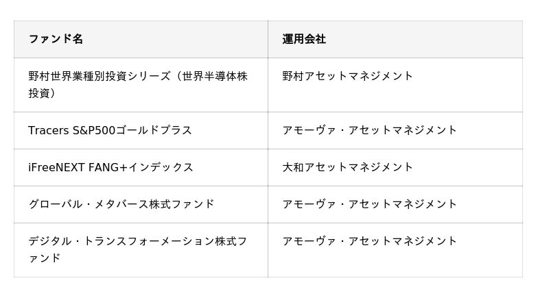 - NISA積立部門NISA口座で積立設定をしているお客様数が多かったファンド