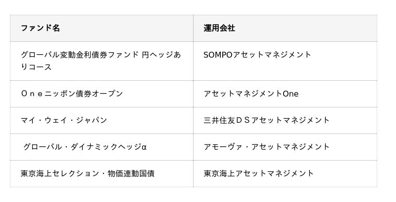 「人気ファンド」カテゴリでは、以下の3部門を設けています。