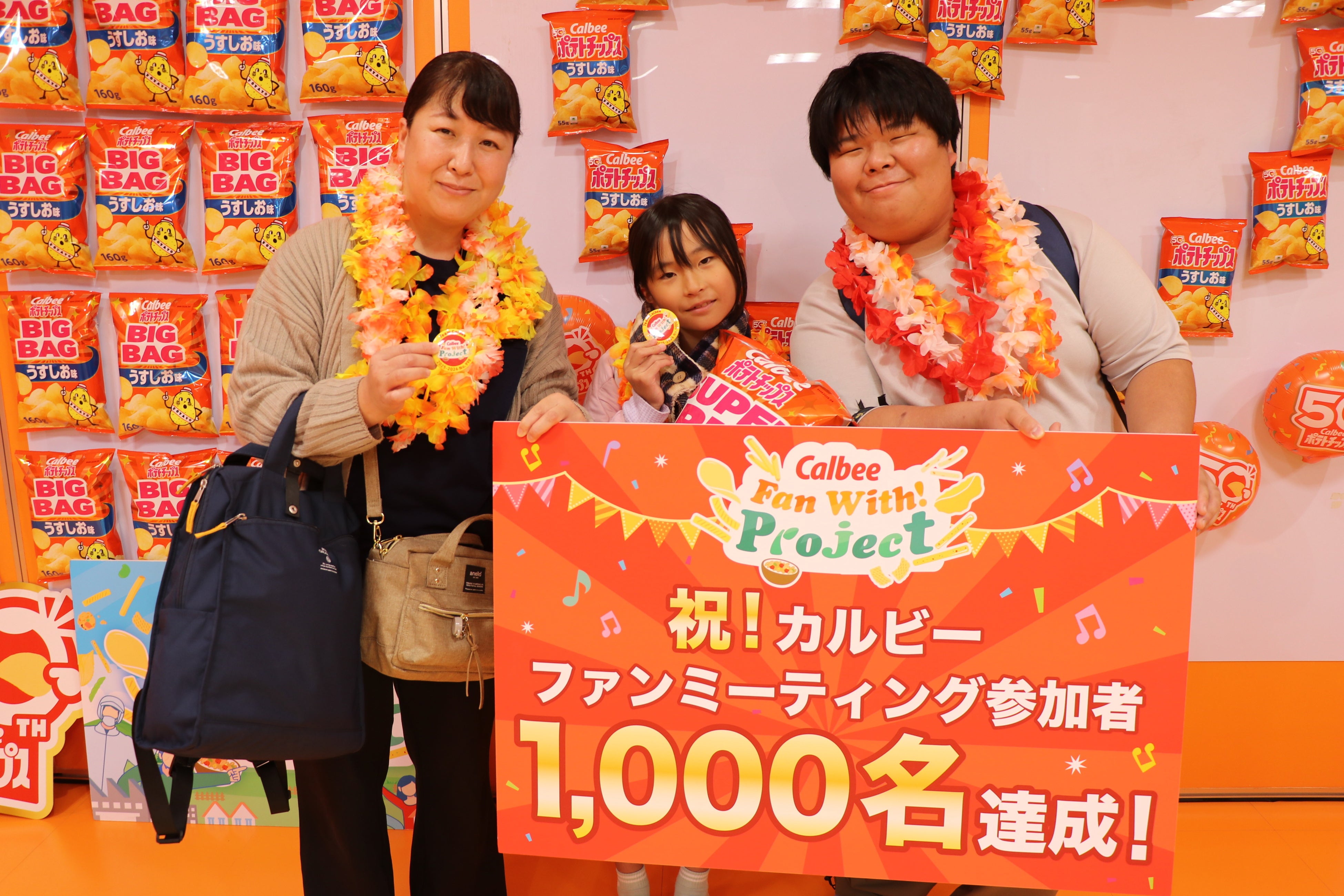 カルビーは1949年の創立以来、「かっぱえびせん」「ポテトチップス」「フルグラ(R)」「じゃがりこ」など、数多くの商品を発売してきました。そんなカルビー商品をご愛顧いただいているファンの皆さまと実際にお会いし、つながりを深めたいという想いから、2024年にカルビー初となる全国規模のファンミーティングCalbee『Fan With! Project』を実施しました。全国17カ所の拠点で展開したイベントではファンの皆さま約600名とカルビー従業員約400名の計約1,000名が参加し、多様なプログラムを一緒に体験しました。2024年度のファンミーティングでは、開催後のアンケートで満足度平均4.98点(5点満点)をいただくとともに、イベント参加後の商品購入量が参加前に比べ平均164%※に伸長するなど、お客さまがカルビー商品への関心を高めていただく機会になりました。