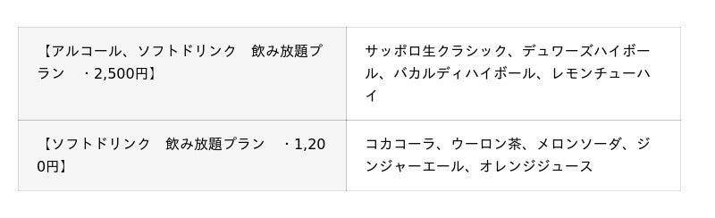 ■ドリンク飲み放題プラン(いずれも120分制、L.O.30分前)