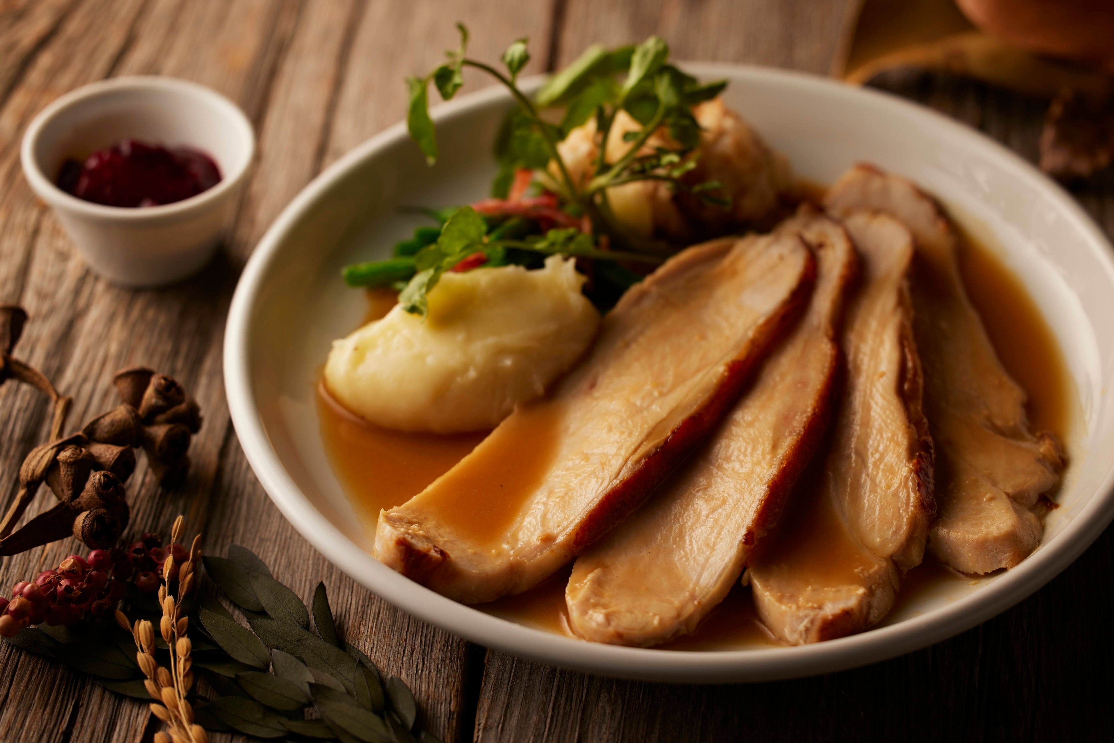 Roasted SHIMANTO Turkey, Apple Gravy Sauce, Cranberry Relish