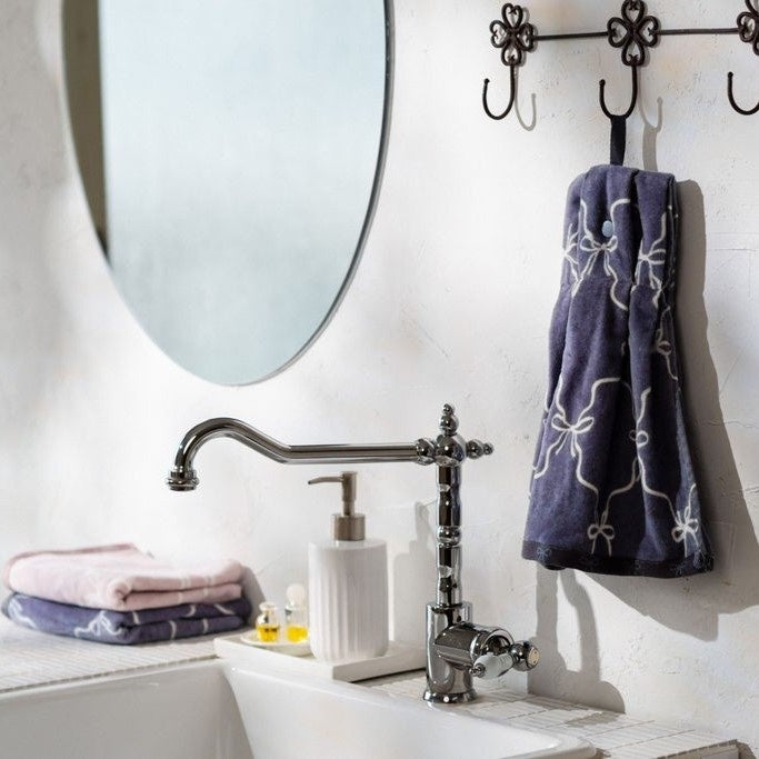 リボンラティス柄で揃えた洗面アイテム。毎日の身支度がちょっと特別な時間に。