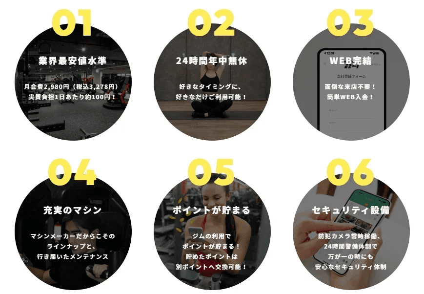 - ジム利用で貯まる「EFポイント」で継続を応援