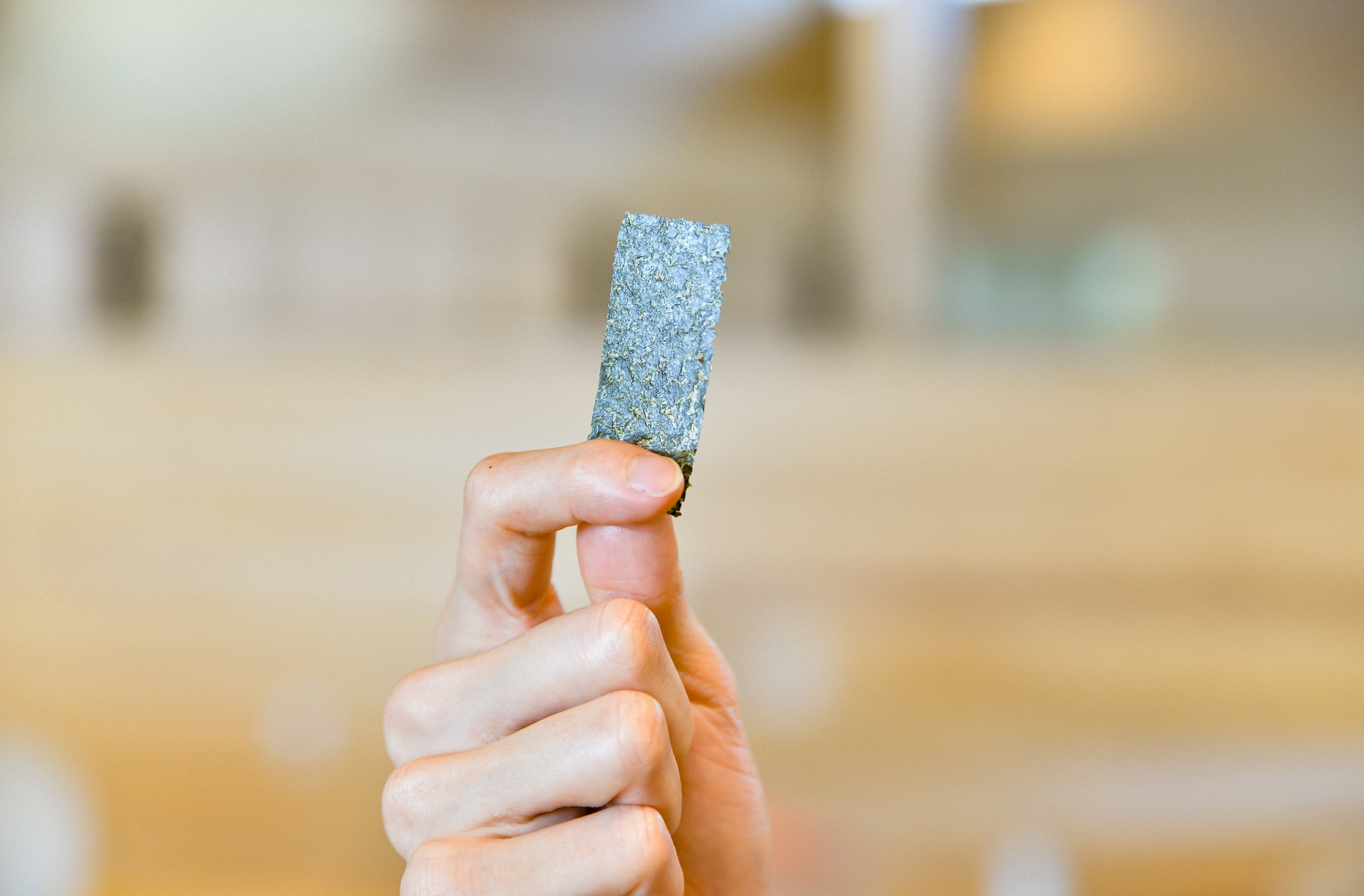 近年ののりの漁獲量減少を受け、のりの代替食品を開発しました。今回はカルビーらしく、スナック感覚で召し上がっていただける商品を提案しました。
