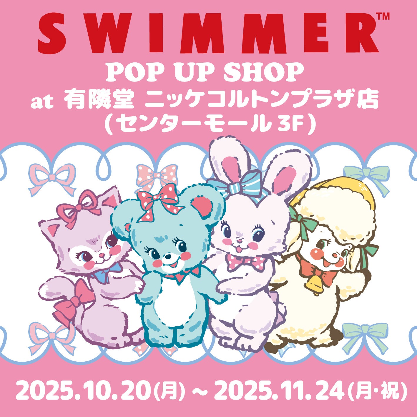 アイピーフォー株式会社(本社:東京都豊島区、代表取締役社長:小濱 剛)がライセンスを取り扱っている大人気雑貨ブランド「SWIMMER」のPOP UP SHOPを、2025年11月24日(月・祝)まで有隣堂 ニッケコルトンプラザ店で開催中です!"かわいいがぎゅっ!"とつまったPOP UP SHOPにぜひお越しください♪