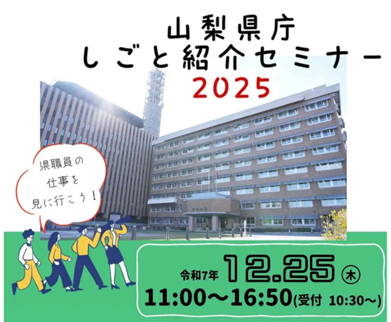 山梨県庁しごと紹介セミナー2025 12月25日開催|山梨県職員の仕事・採用試験情報を現役職員が解説(参加者募集/先着200名)