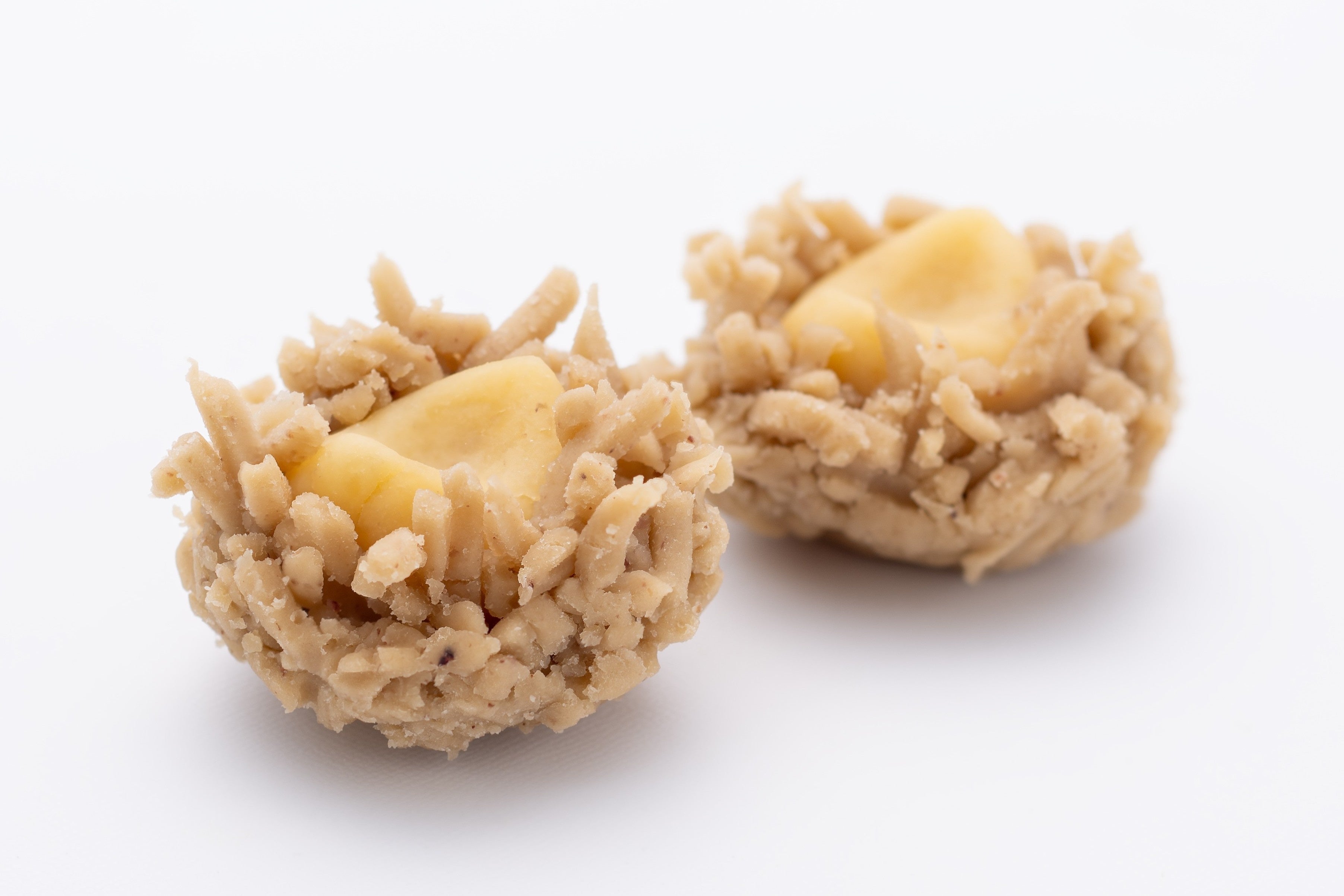 今回の催しでは、"秋の実り"をテーマに、栗を使ったお菓子を中心にご紹介します。サクサクのコルネ生地に粒あんと和三盆クリームを合わせた「あずきコルネ和三盆クリーム」、なめらかな栗あんに刻んだ栗を混ぜ込みアクセントを加えた「栗コルネ」、そしていが栗を思わせる姿に仕上げた「栗きんとん」。栗本来のやさしい甘みをしっかりと感じられる、見た目にも楽しいお菓子です。