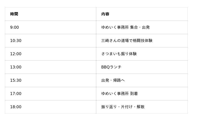 今回はさつまいも掘りに加えて、三崎さんによる格闘技体験とBBQ交流会も実施する予定です。