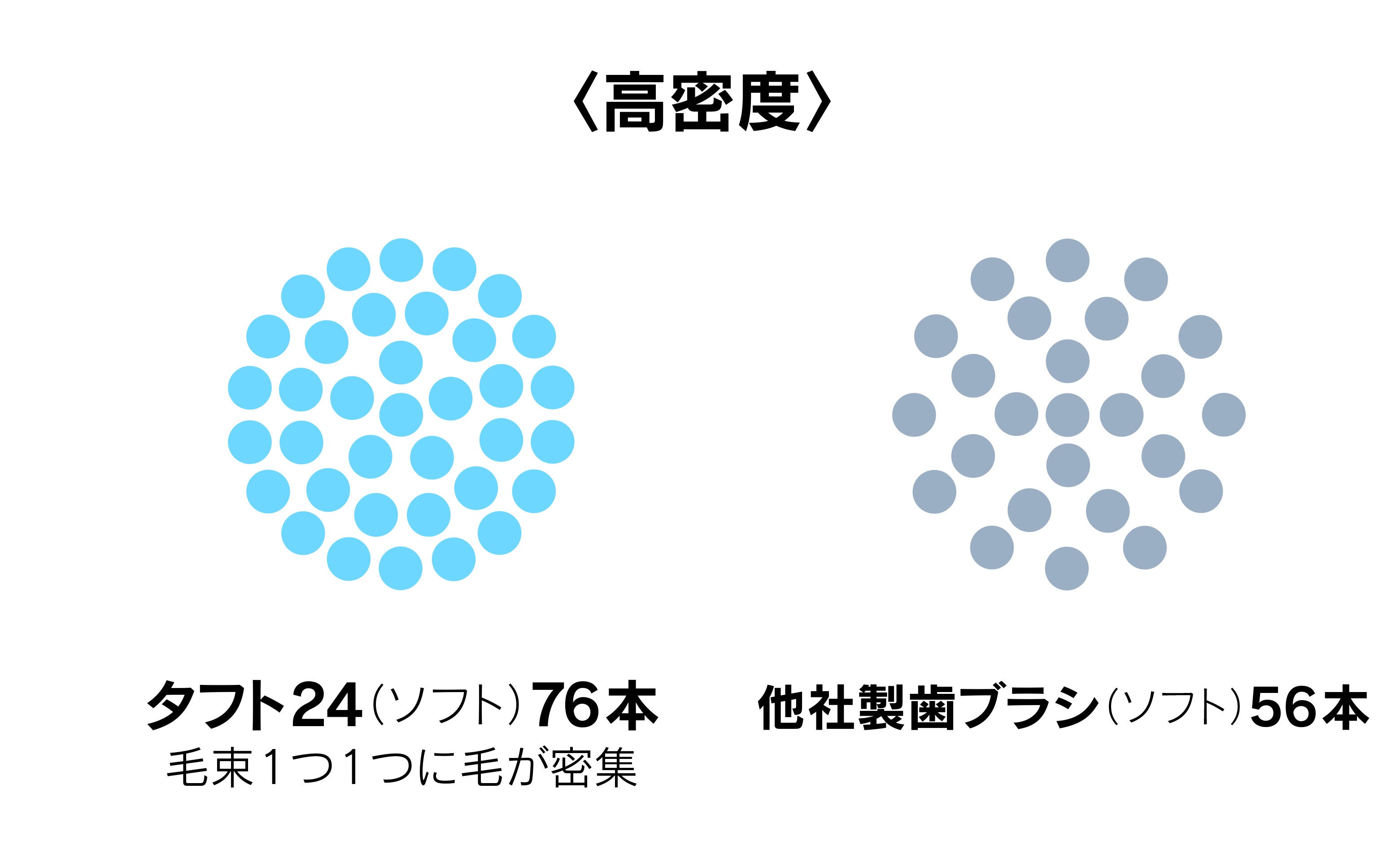 こだわり2. 高密度一般的な⻭ブラシと比べて1束の密度が高いのが特長。たくさんの毛が歯をしっかり包み込んでしなやかに動くので、細やかに汚れを落とせます。