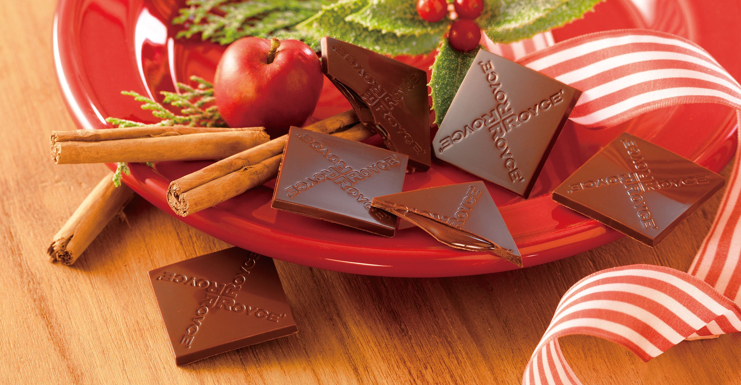 薄さ3mmの繊細なチョコレートに、シナモンが香るとろりとしたアップルソースを閉じ込めました。チョコレートをぱりっと割ると、りんごのさわやかな香りとシナモンの甘く奥深い香りがあふれ出します。すっきりとしたチョコレートの味わいにマッチする、りんごとシナモンの上品なハーモニーをお楽しみください。