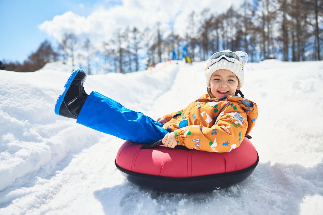 未就学児や初心者の方でも安心して練習できる「初心者上達エリア」、親子で雪遊びを満喫できる「キッズパーク」など、ファミリー層に嬉しい施設が充実。さらに、軽井沢スノーパーク名物の「スノーチュービング」は、子どもから大人まで大人気のアクティビティです。スキー・スノーボード用品は一式レンタル可能で、子ども用には軽量モデルや安全性に配慮したギアも取り揃えておりますので、手ぶらでのご来場も安心です。