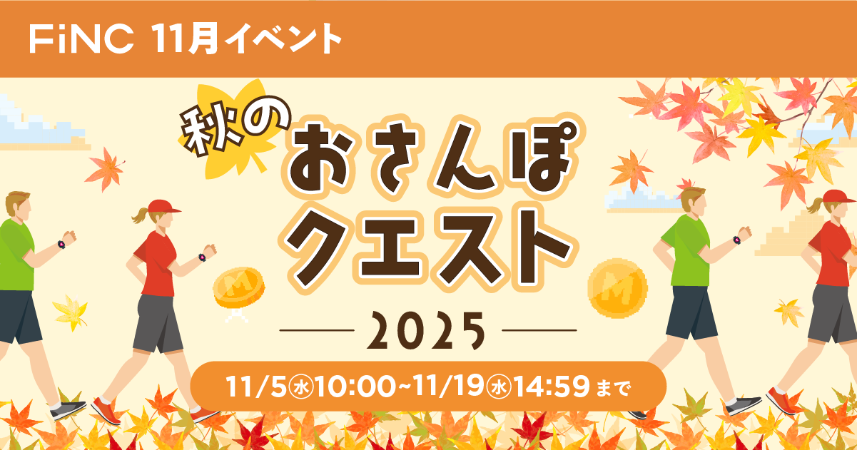 予防ヘルスケア×AI(機械学習、生成AI)に特化したヘルステックカンパニーの株式会社FiNC Technologies(本社:東京都千代田区、代表取締役社長:小島 かおり、以下「当社」)が提供する健康管理/ダイエットアプリ「FiNC(R)︎」は、本日2025年11月5日(水)より、11月イベント「秋のおさんぽクエスト2025」を開始いたします。