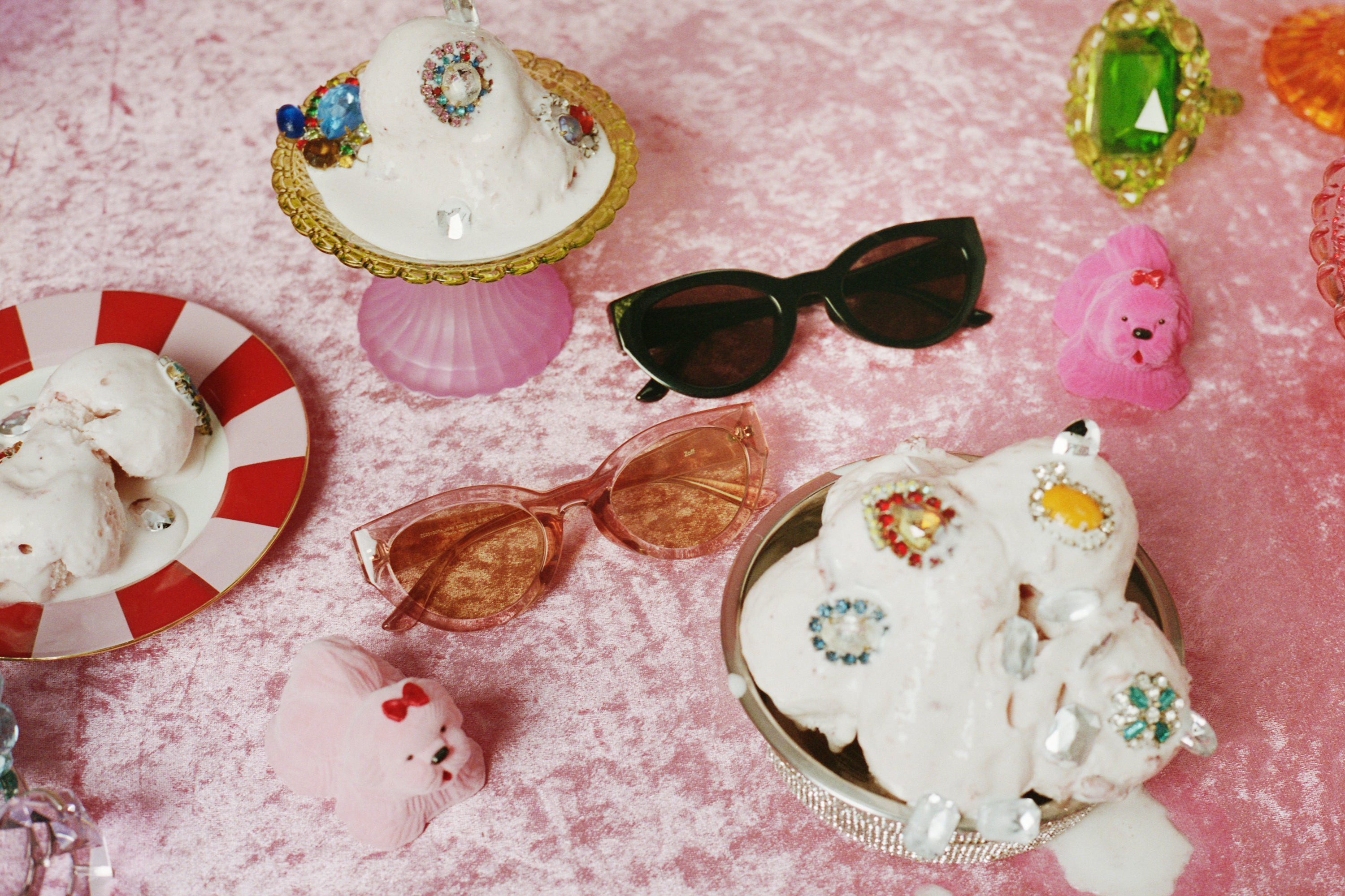 「これ全部Zoff?!」それが、今回撮影するサングラスのラインアップを初めて見せていただいた時のファーストインプレッションでした。「Zoffの商品を使って自由に表現して欲しい。」という夢のようなお言葉をいただいたので、私が最初に感じた驚きをそのまま体感してもらえるような、ファンタジー溢れるファッションストーリーを作れたら楽しいなと思い、今回の企画を考えました。作品を一緒に作ってくれたクリエイターの仲間たち、そしてこんなにもたくさんのワクワクを与えてくださったZoffの皆さまに心から感謝しています。作品を見てくれた方々にもこのワクワクが伝染して、サングラスをかけて街へ出て、そして、新しくてスーパーな自分に出会うきっかけにしてもらえたらとても嬉しいです。まずは今回のラインナップの中からお気に入りの1本を見つけてみてはいかがですか? マジでオススメ!