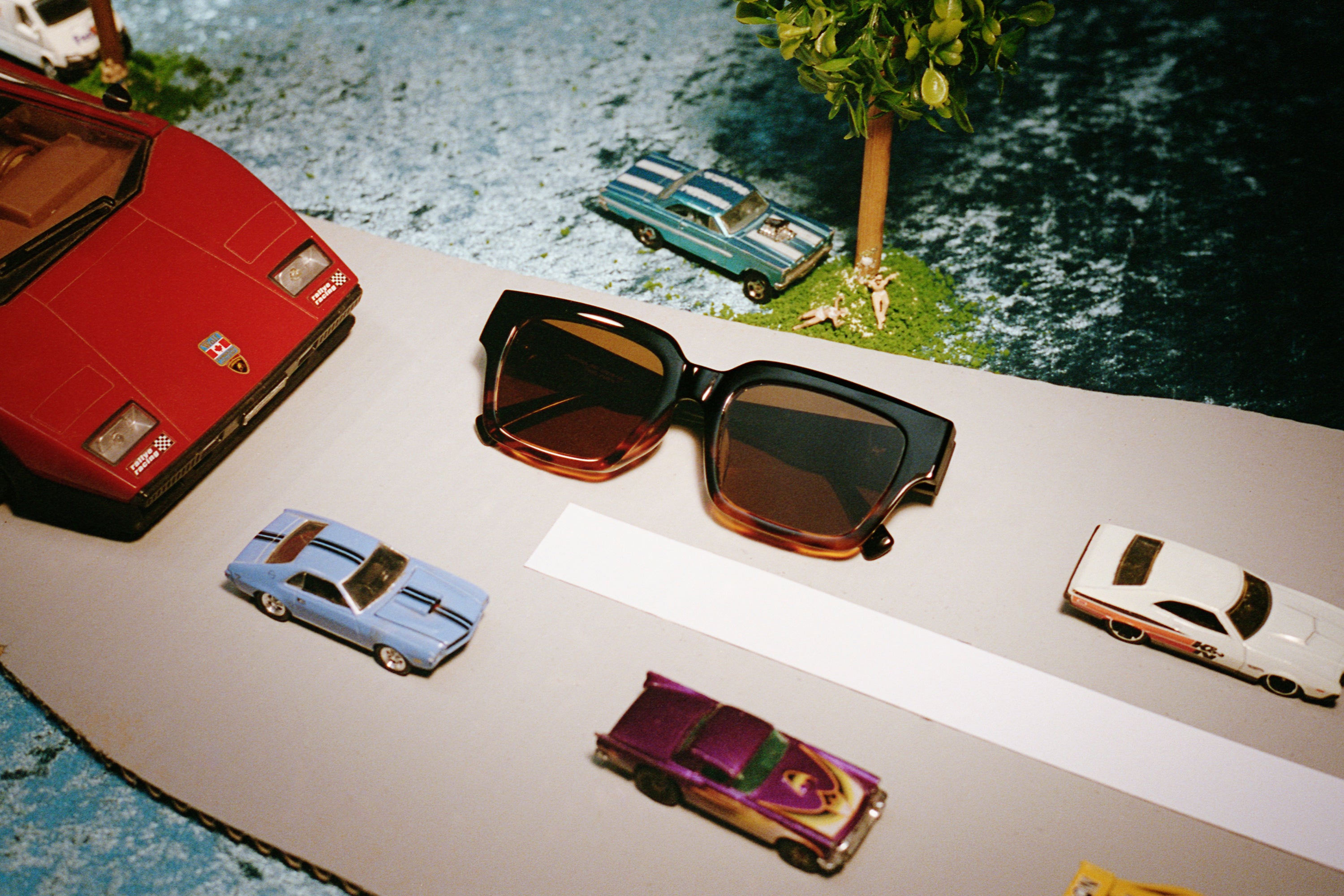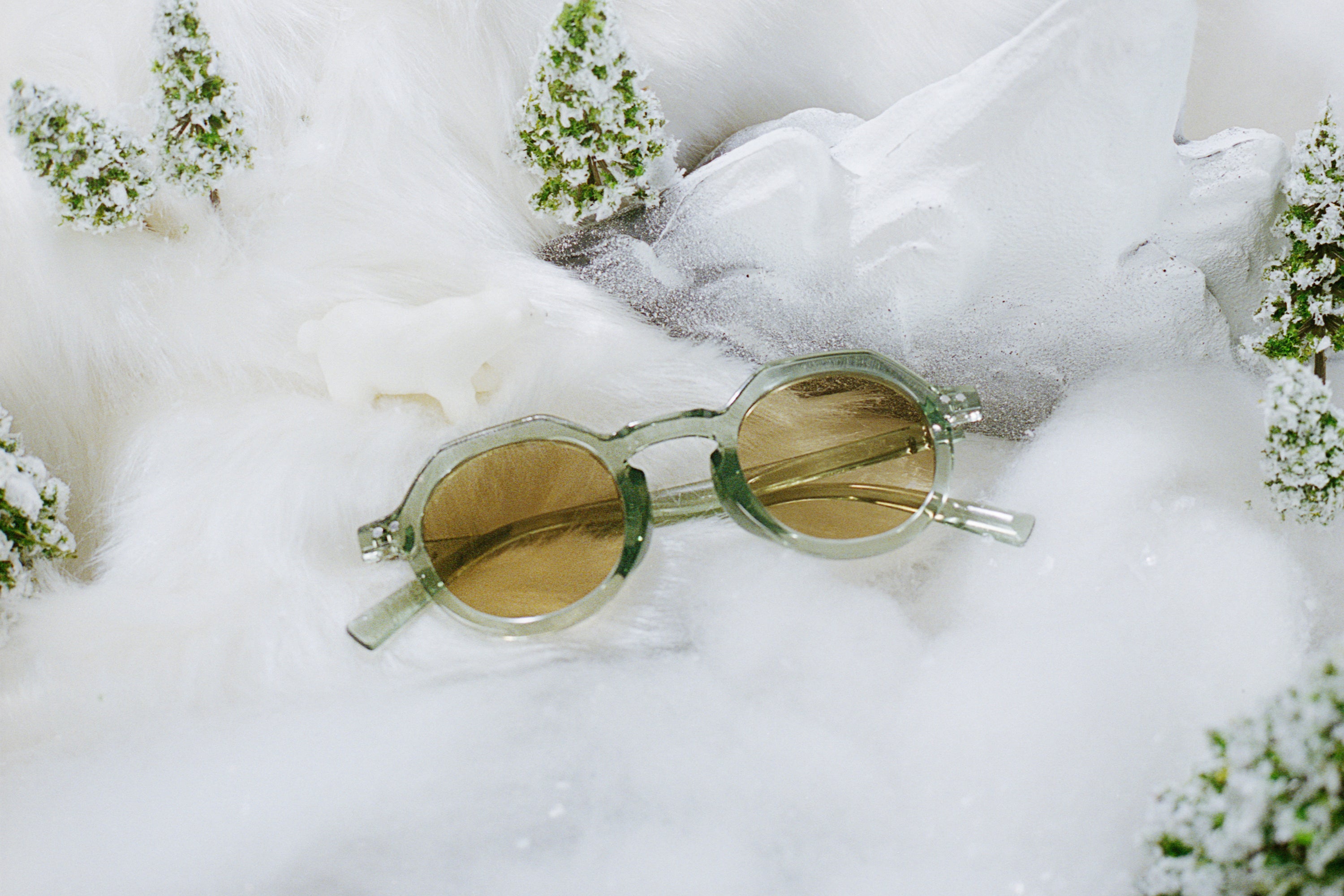 今回のテーマは、「ユーモラスでキッチュな脳内ファンタジア」。個性豊かなサングラスをスパイスに描くファンタジープラネットを展開します。サングラスは、トレンドのフラットレンズをはじめ、オーバル型やキャットアイ型などをラインアップ。中間色のレンズカラーが印象的なファッション性の高いアイテムがそろいました。日常から少し離れたファンタジーあふれるファッションストーリーを表現した本作では、映画や音楽にインスパイアされた5つのストーリーが展開され、それぞれのキャラクターを引き立てる重要な要素としてサングラスが登場します。
