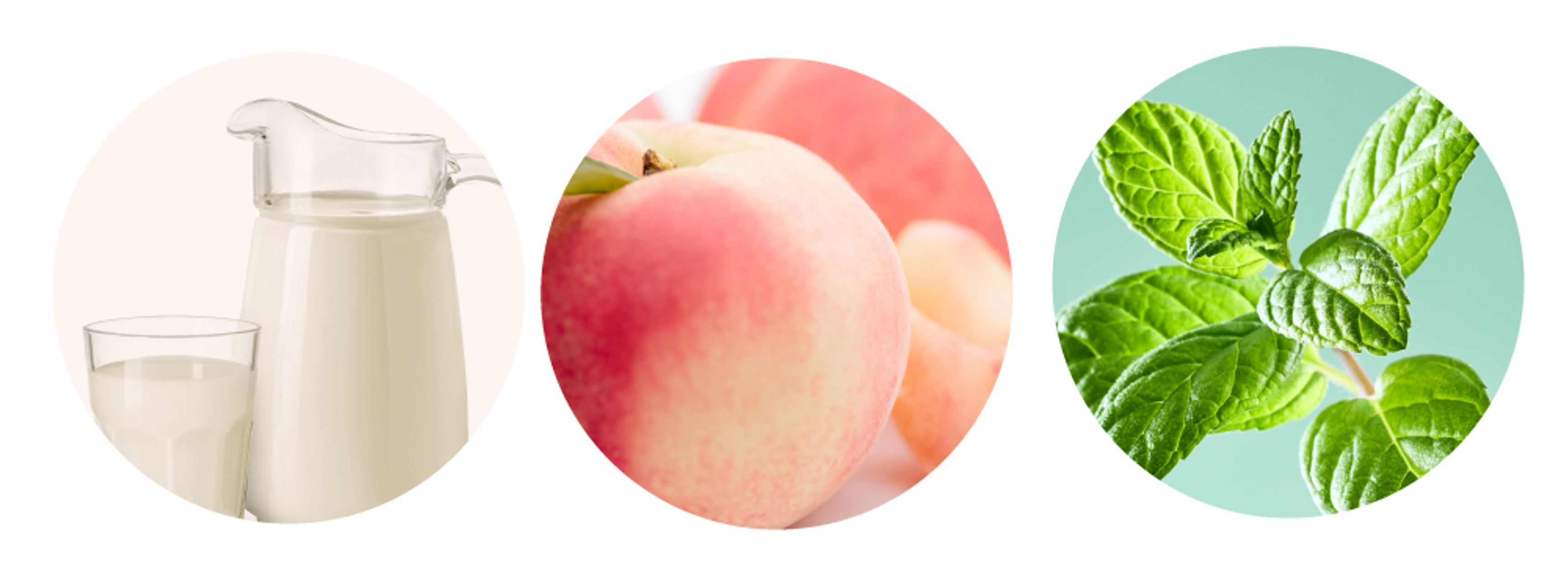 基本のやさしいミルク、ほんのりピンク色のピーチ、メントール入りでプランピング効果のあるミントの3種から、気分や季節によって好きな香りをお選びいただけます。