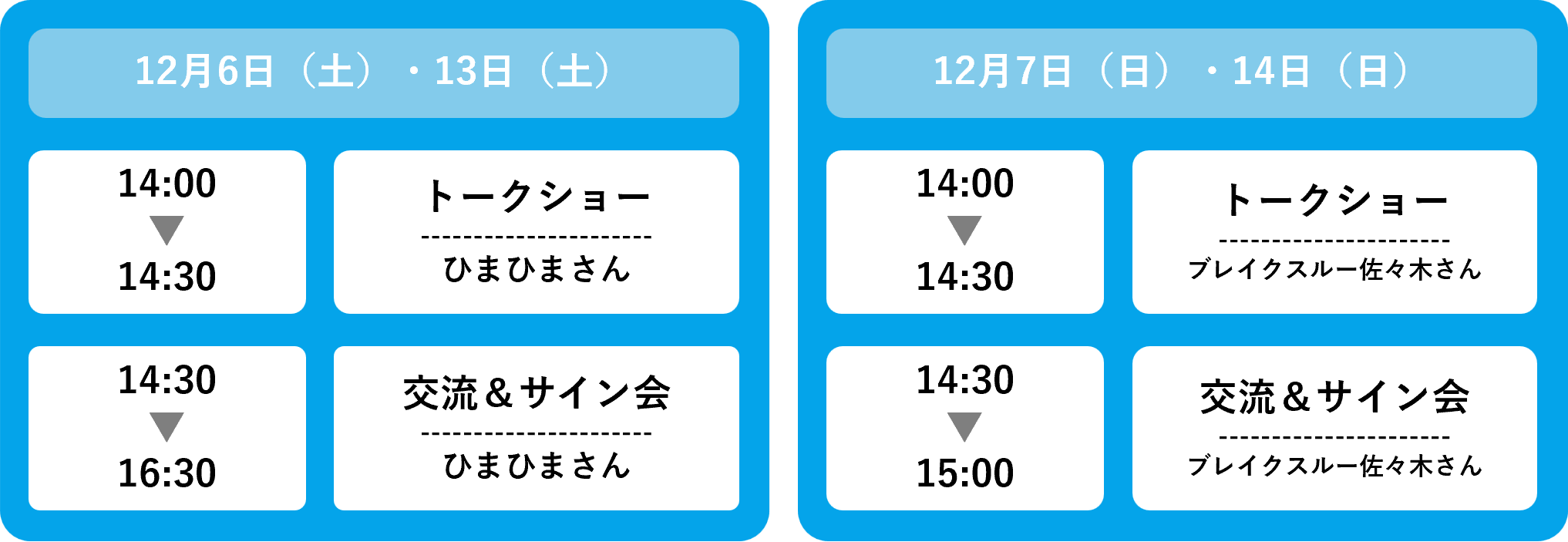 日時/会場:12月 6日(土)14:00~16:30、 7日(日)14:00~15:00/ハンズ新宿店