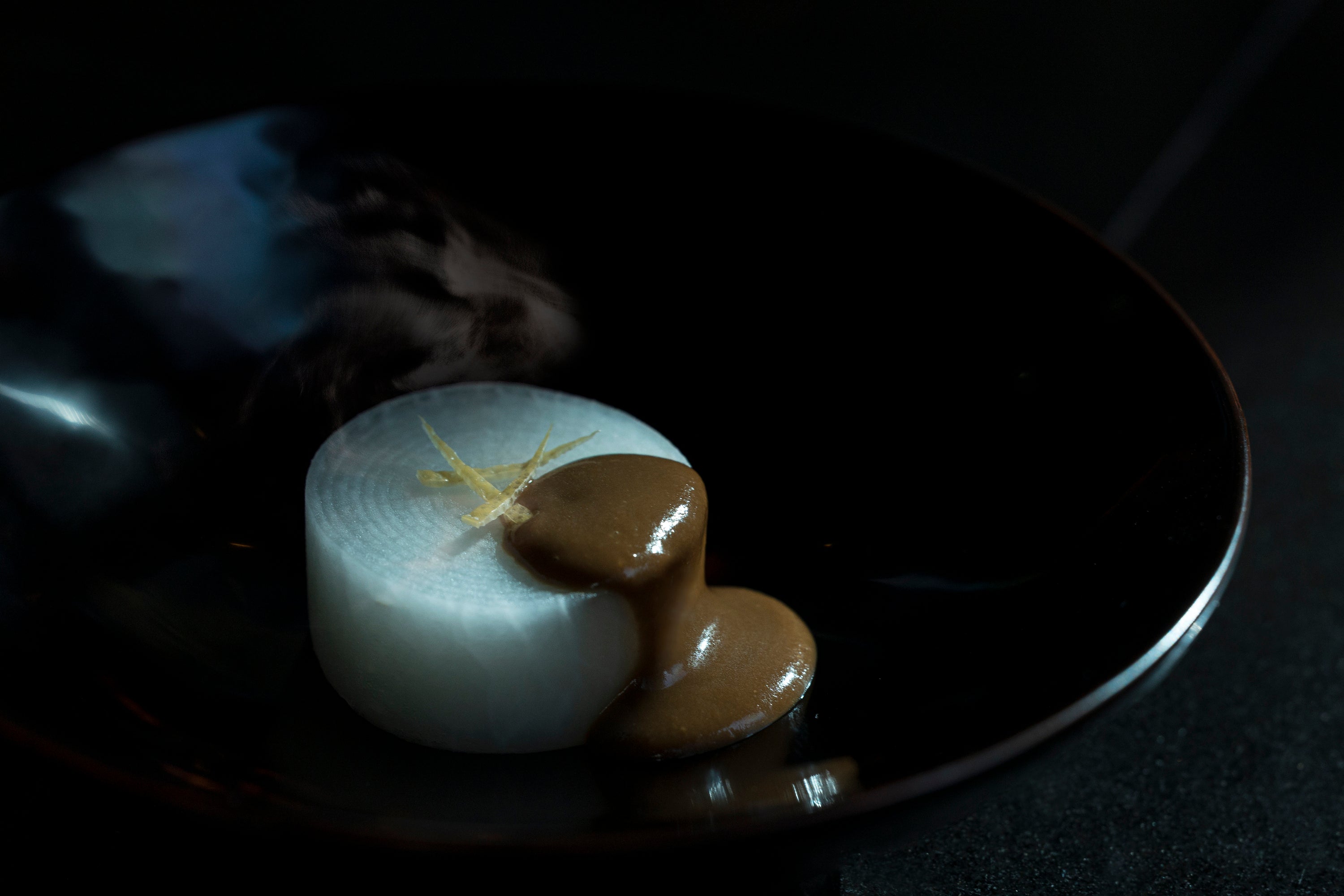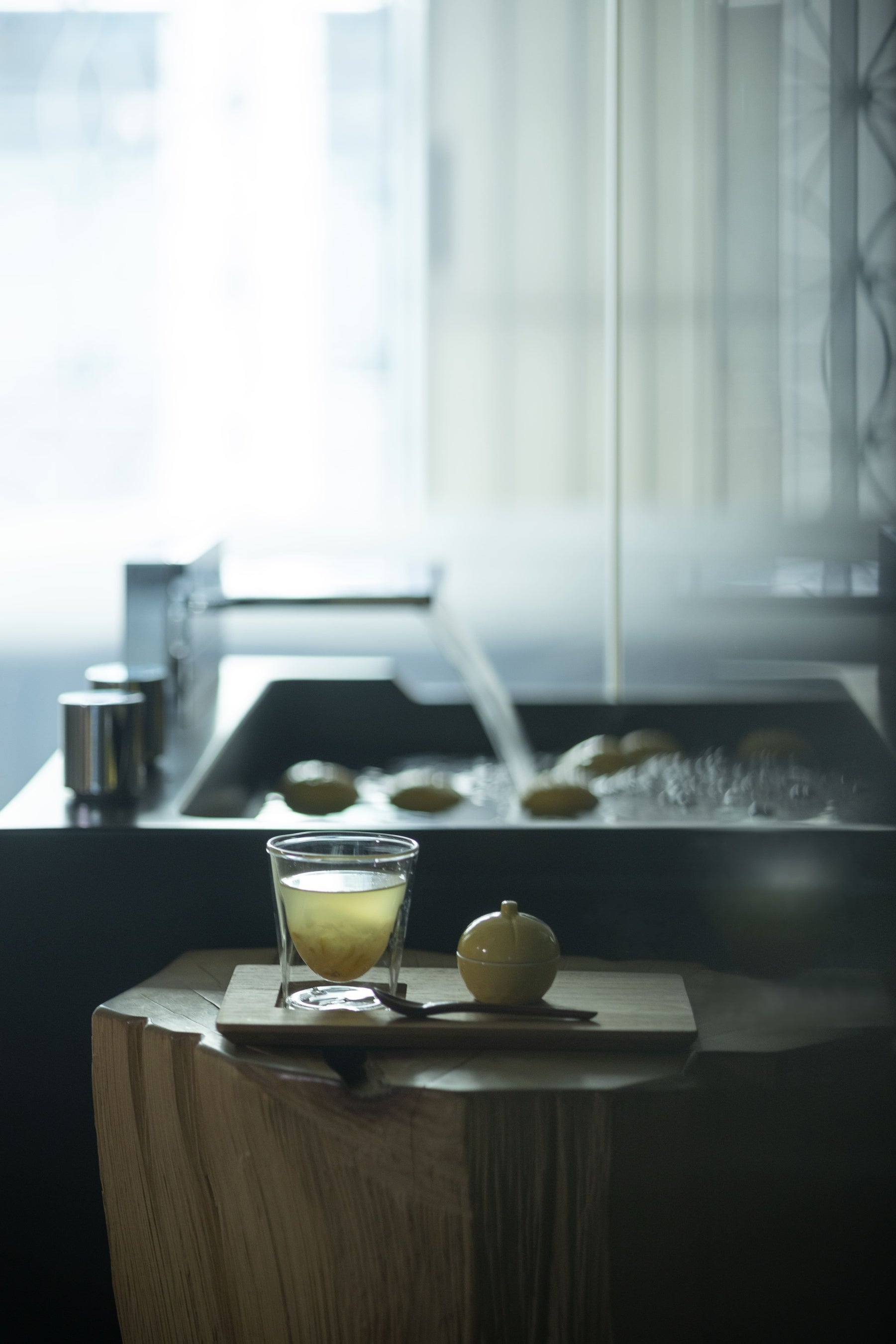 季節のおつまみとお酒を楽しむ「よい前のひととき」。冬には、おでんの起源とも言われる江戸の風物詩「ふろふき大根」を提供します。当時の調理法を再現した熱々の大根と熱燗を、季節の植物が設えられた落ち着いた空間で堪能できます。日本の食文化の歴史と温もりに満たされる豊かなひとときです。