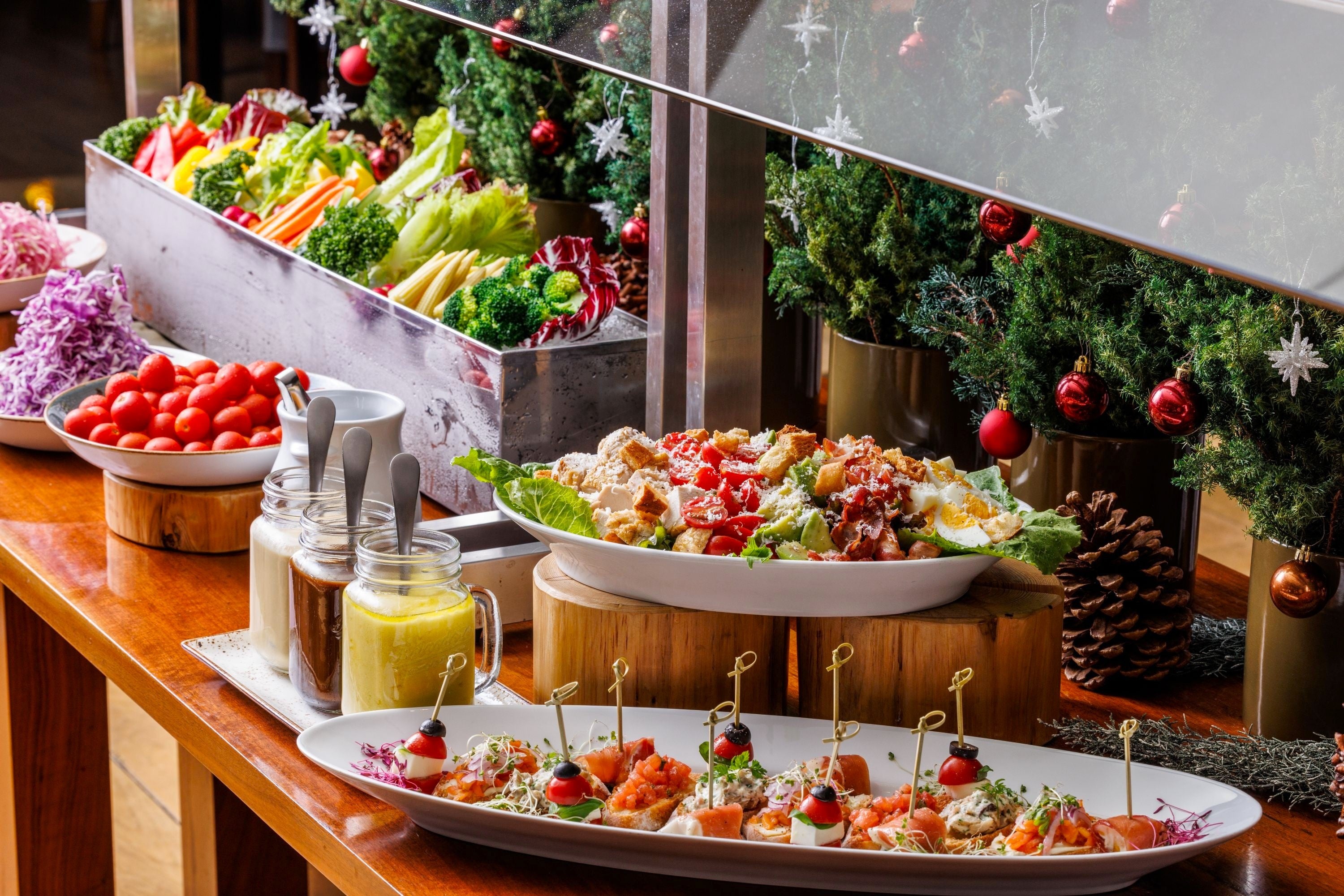 フェスティブシーズンにふさわしい華やかなブッフェとコースオールデイダイニング「カフェ 33」では、クリスマスからお正月にかけての特別なひとときにふさわしい華やかなフェスティブメニューをご用意いたします。薪オーブンで香ばしく焼き上げるグリル料理や彩り豊かな前菜、季節のデザートが並ぶブッフェとコースは、世代を問わずお楽しみいただける内容です。木の温もりあふれる店内で、やわらかな陽光とともに心温まる時間をお過ごしください。